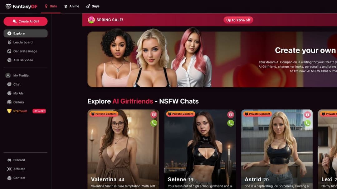 An AI companion platform that creates virtual girlfriends for users. The site lets you build personalized AI partners for chatting, sexting, and roleplaying. It has the customization options ...
